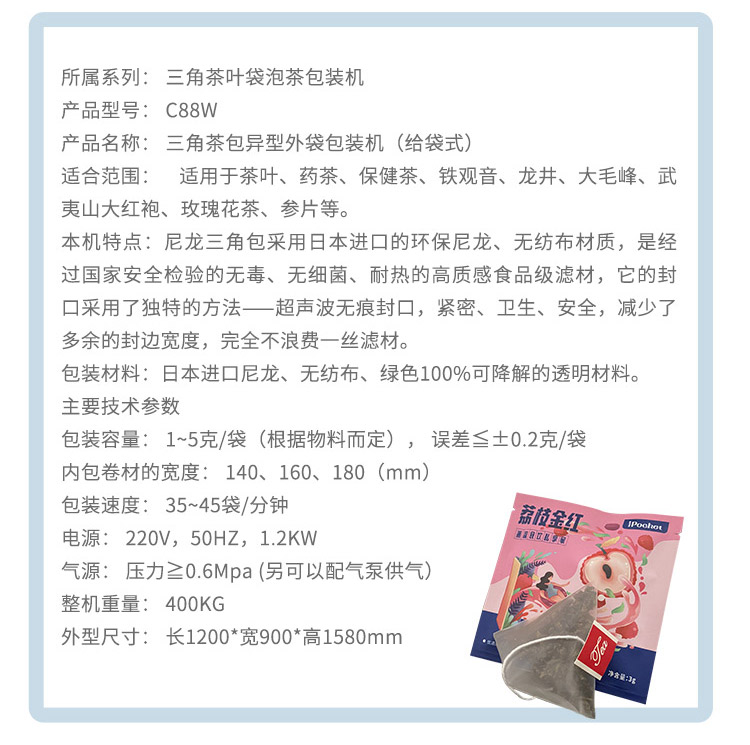 C88W三角茶包異型外袋包裝機(jī)(給袋式)