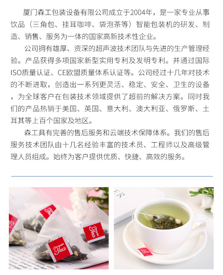 毒、無細(xì)菌、耐熱的高質(zhì)感食品級濾材,它的封口采用了獨(dú)特的方法——超聲波無痕封口,