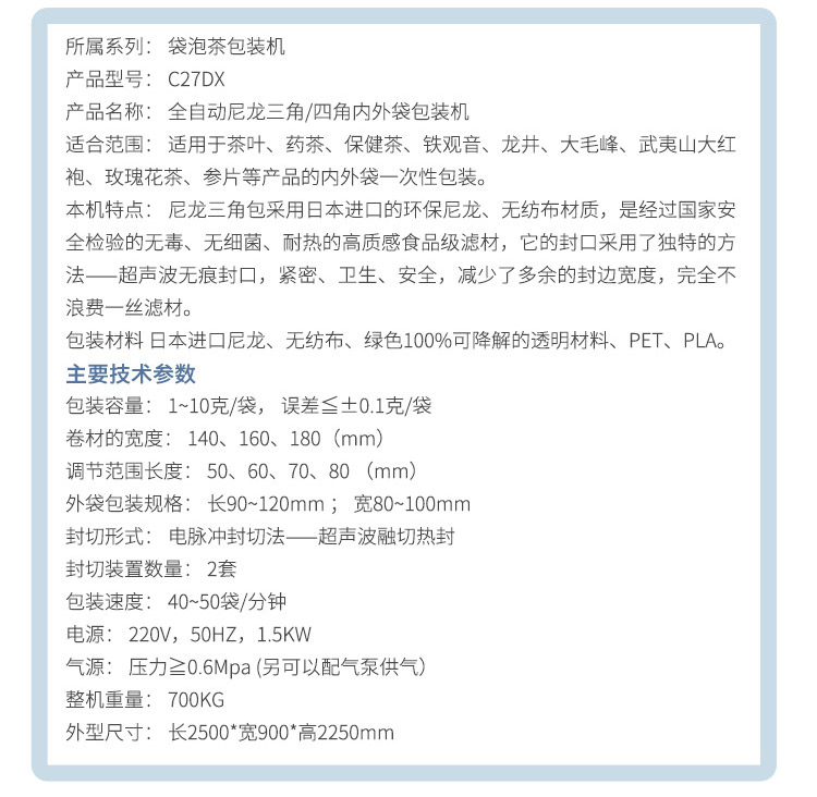 C27DX 全自動(dòng)三角/平包立體袋泡茶內(nèi)外袋包裝機(jī)