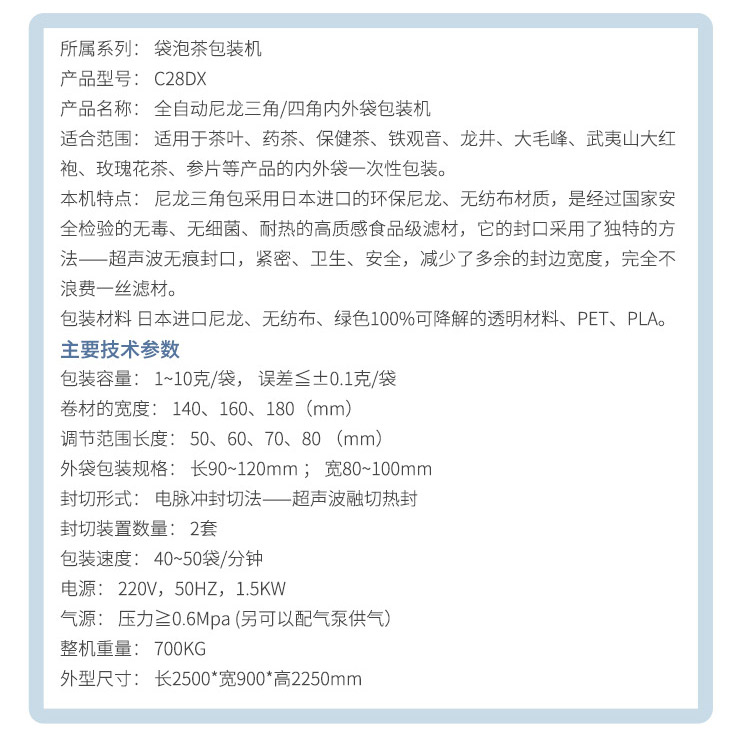 C28DX 全自動(dòng)三角/平包立體袋泡茶內(nèi)外袋包裝機(jī)