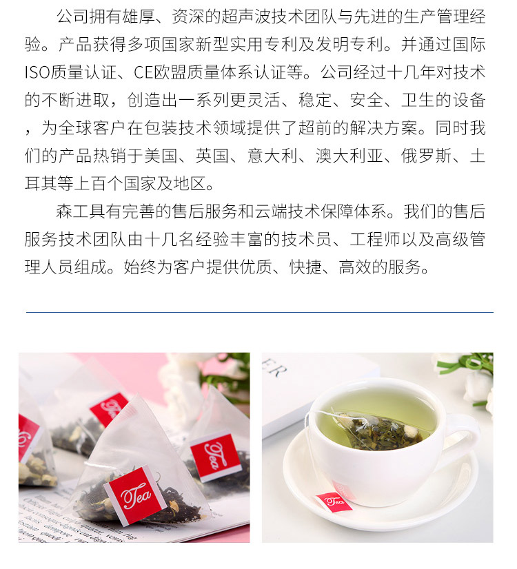 適合范圍: 適用于茶葉、藥茶、保健茶、鐵觀音、龍井、大毛峰、武夷山大紅袍、玫瑰花茶、參片等產(chǎn)品的內(nèi)外袋一次性包裝。